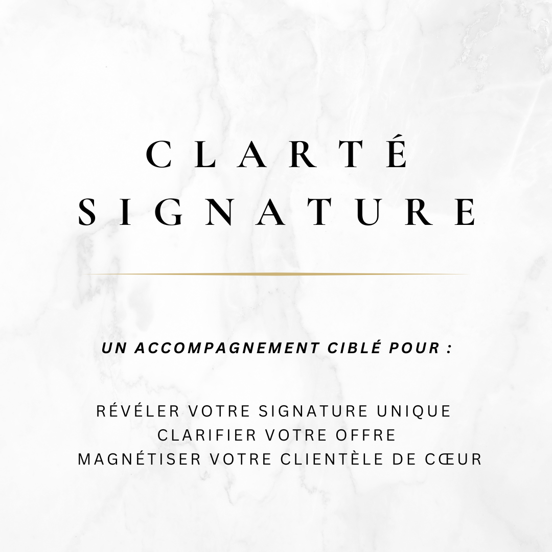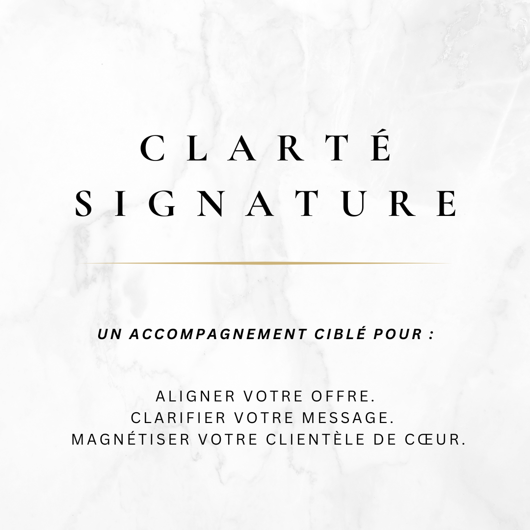 ➕ 3 séances d’alignement stratégique pour révéler votre signature unique, clarifier l’essence de votre offre et poser des repères clairs pour la suite.