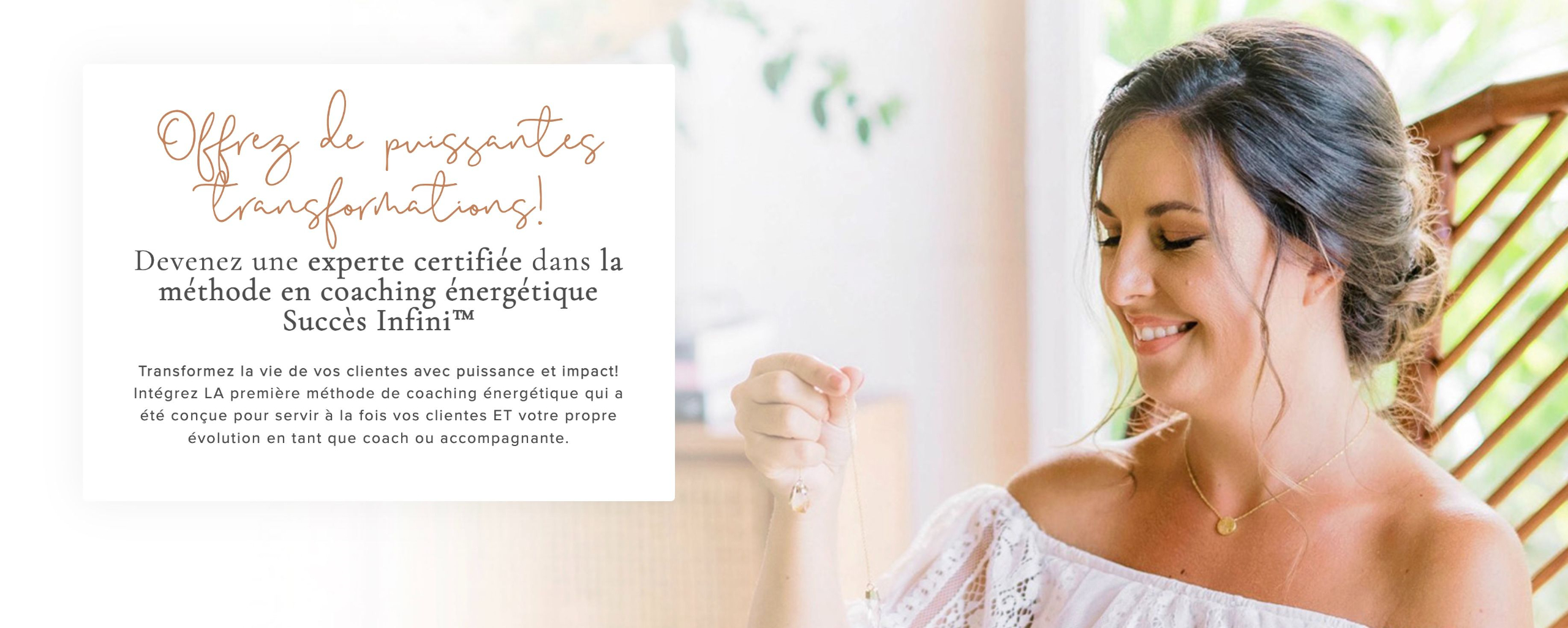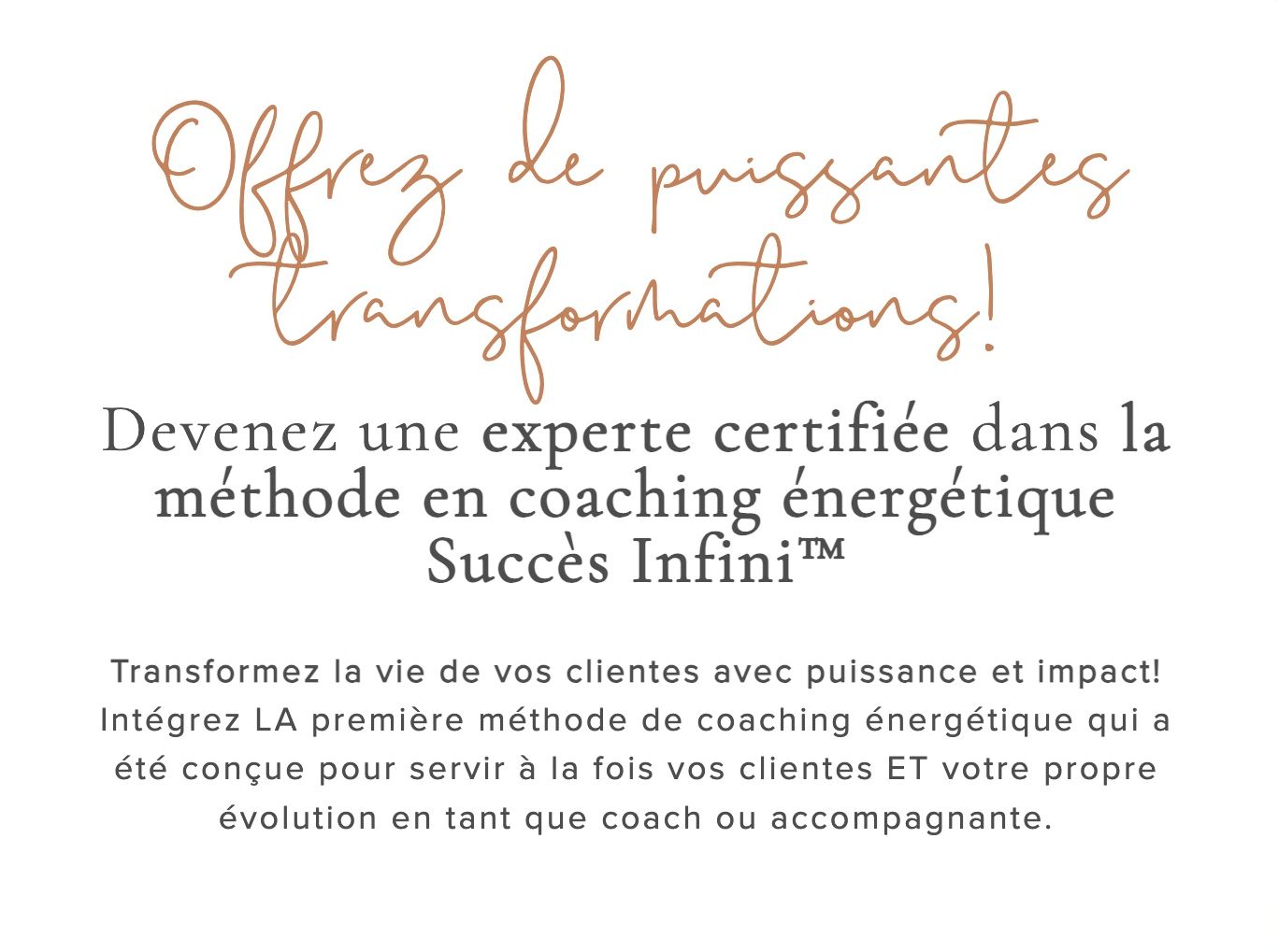 Si vous désirez découvrir plus concrètement la puissance de la méthode avant de vous inscrire à la formation, je vous propose de vivre une séance Succès Infini™.
